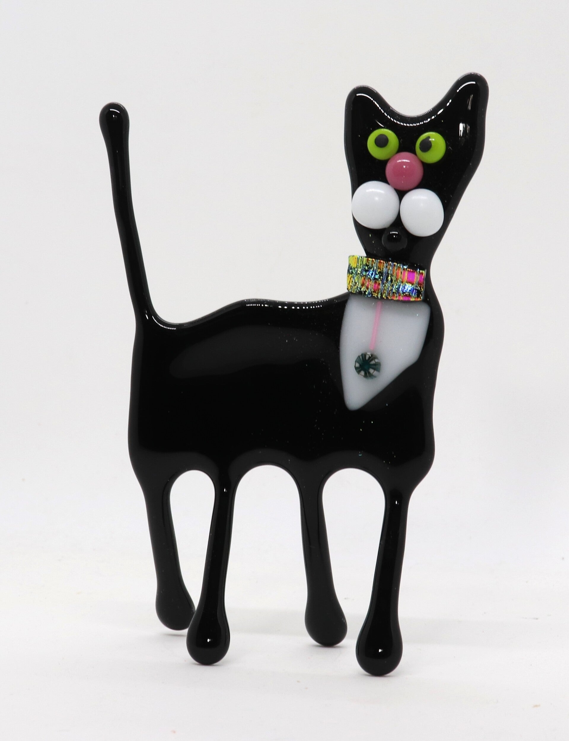 Eigenwijs, op eigen benen staand zwart-wit katje met blingbling halsband