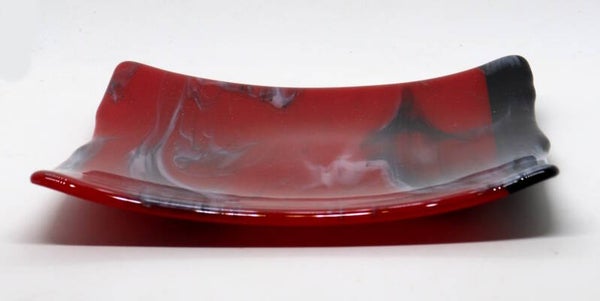 Vierkant schaaltje met golvende randen in rood, zwart en wit
