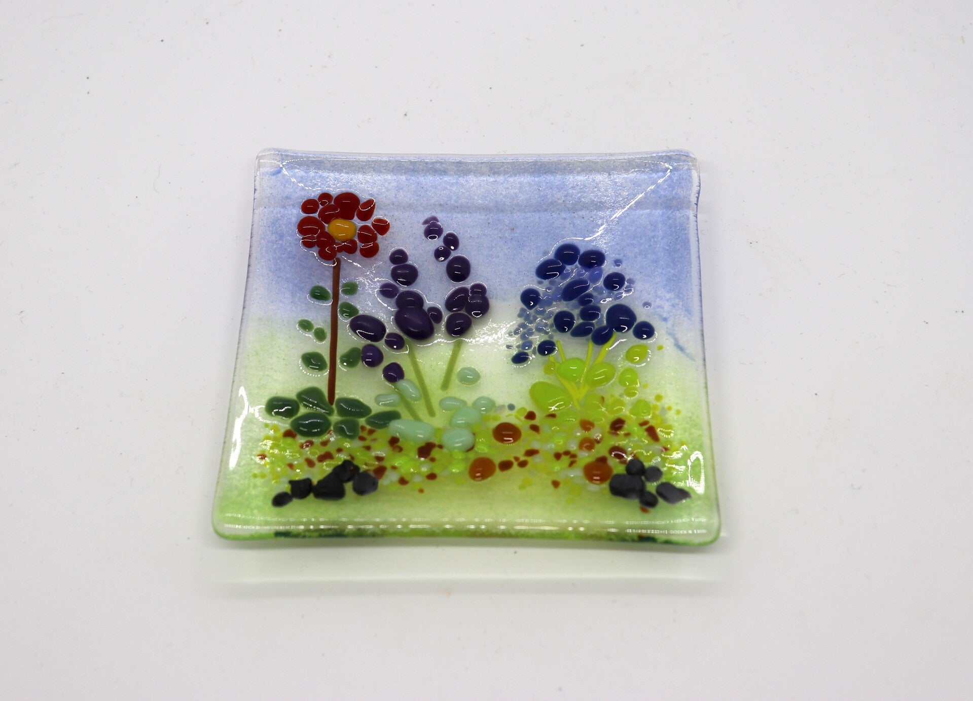 vierkante glazen schaaltjes met fleurig bloemenmotief, set van 2