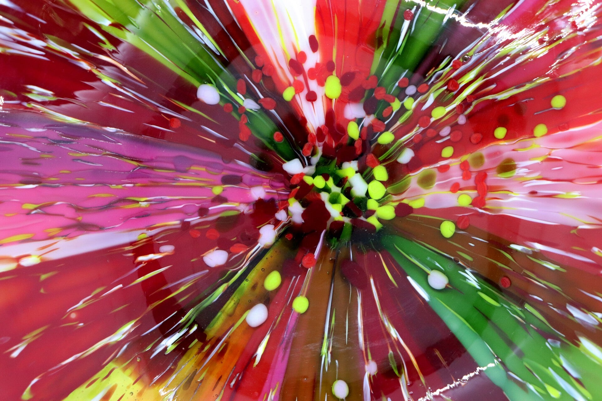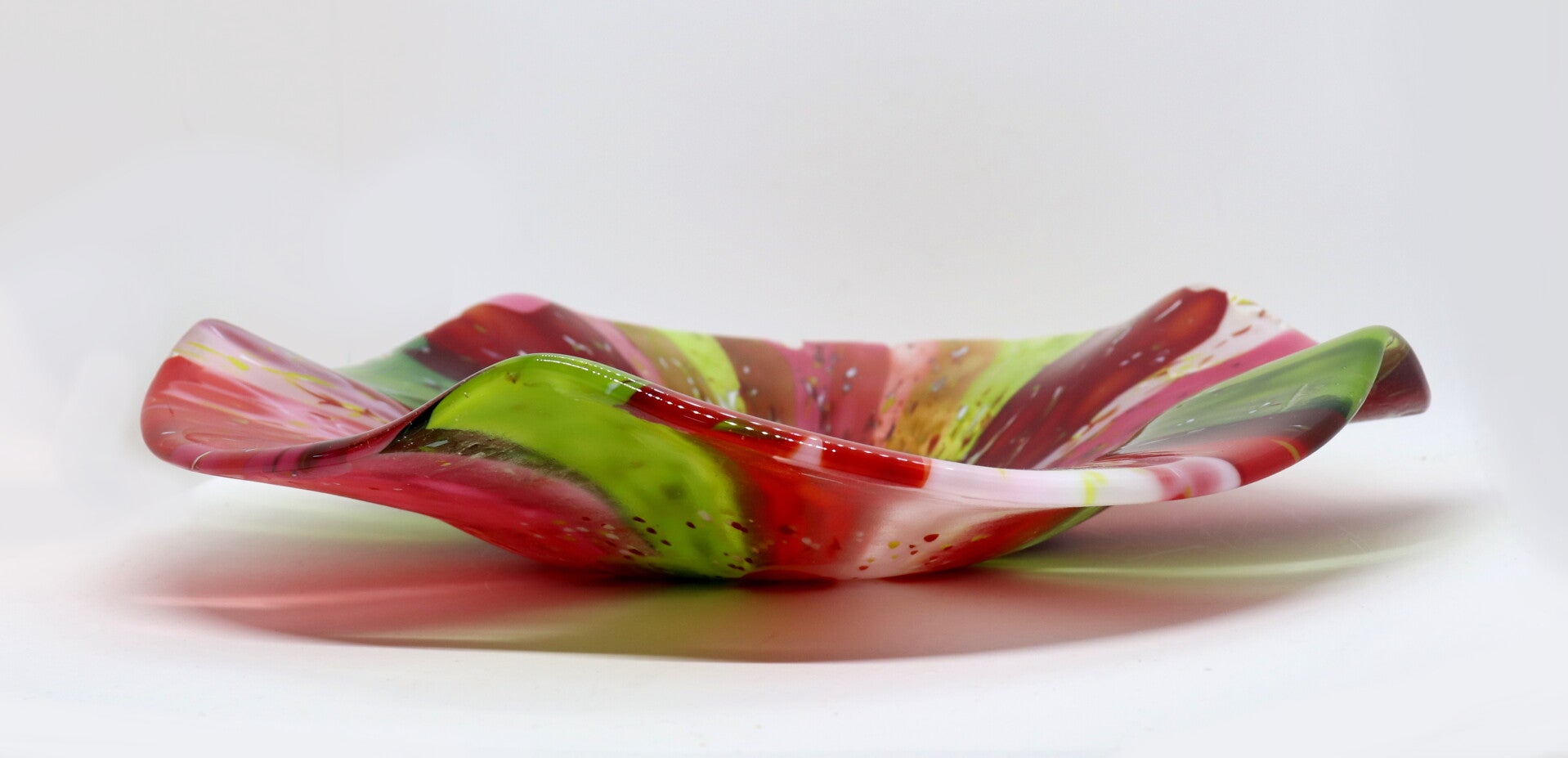 Grote gegolfde schaal met vrolijke fruitkleuren, een echte eye-catcher